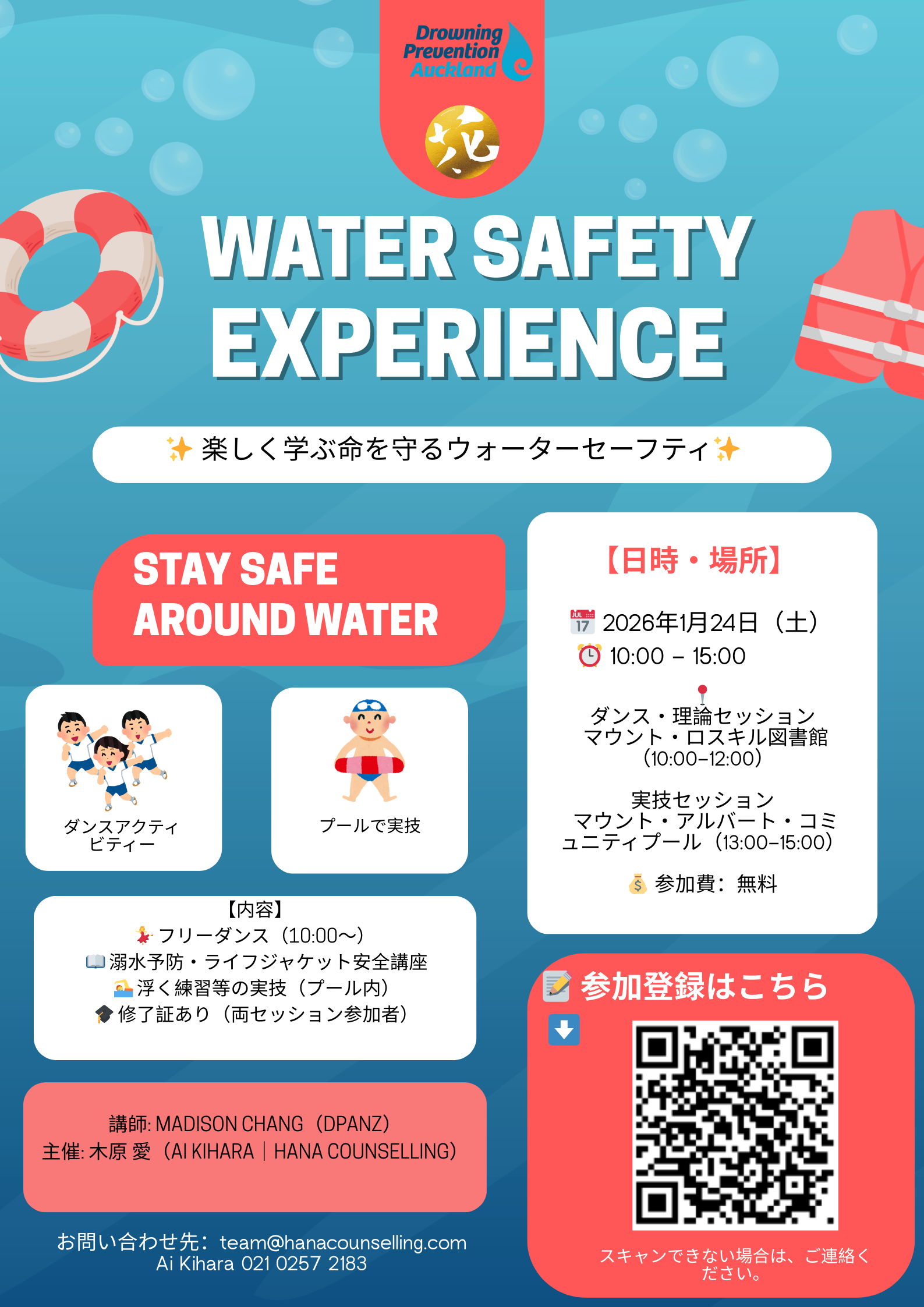 Join Hana Counselling x DPANZ for a fun, hands-on water safety workshop for the whole family!